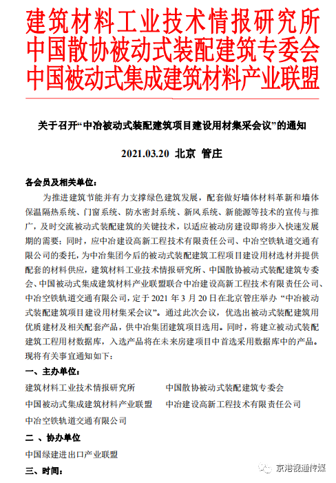 關(guān)于召開“中冶被動式裝配建筑項目建設(shè)用材集采會議”的通知