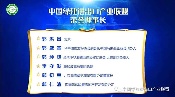 國(guó)家建筑材料工業(yè)技術(shù)情報(bào)研究所、首席專家 崔源聲主席、國(guó)家建筑材料工業(yè)技術(shù)情報(bào)研究所副所長(zhǎng)薛艷峰、主任田桂萍、中國(guó)綠建進(jìn)出口產(chǎn)業(yè)聯(lián)盟理事長(zhǎng)候選人郭朝連、來(lái)自北京的領(lǐng)導(dǎo)郭洪昌、馬來(lái)西亞中國(guó)商會(huì)副會(huì)長(zhǎng)、馬中友好協(xié)會(huì)郭盛基會(huì)長(zhǎng)、臺(tái)灣中華海峽兩岸經(jīng)貿(mào)促進(jìn)會(huì)、大陸地區(qū)負(fù)責(zé)人郭坤輝先生、清華大學(xué)建筑設(shè)計(jì)研究院張以超教授、新加坡亮馬集團(tuán)總裁李守發(fā)、北京鼎盛威記商貿(mào)有限公司董事長(zhǎng)郭初鑾、海南樂東駿廈房地產(chǎn)開發(fā)有限公司董事長(zhǎng)郭仁清、河北智博保溫材料制造有限公司總經(jīng)理布立坤、環(huán)球慧思(北京)信息技術(shù)有限公司大區(qū)總監(jiān)高健、國(guó)聯(lián)股份涂多多副總裁邵召軍、北京建工華創(chuàng)科技發(fā)展有限公司特邀顧問宋傳貴、中國(guó)綠建進(jìn)出口產(chǎn)業(yè)聯(lián)盟副理事長(zhǎng)候選人古麗、中國(guó)建材頻道京港視通在線部長(zhǎng)田品、北京亞太瑞斯會(huì)展服務(wù)有限公司總經(jīng)理?xiàng)罴t江、華藝建材科技有限公司總工程師謝思松、河北山泰裝配式建筑科技有限公司總經(jīng)理王繼龍等專家與企業(yè)代表。