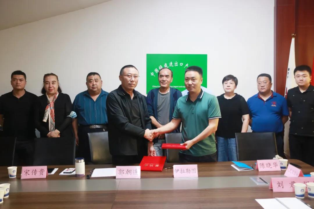 情報(bào)所·中綠建進(jìn)出口產(chǎn)業(yè)聯(lián)盟理事長(zhǎng)郭朝連與白云鄂博飛地經(jīng)濟(jì)雙創(chuàng)園第六園區(qū)主任伊拉勒?qǐng)D雙方代表簽訂了戰(zhàn)略合作協(xié)議。